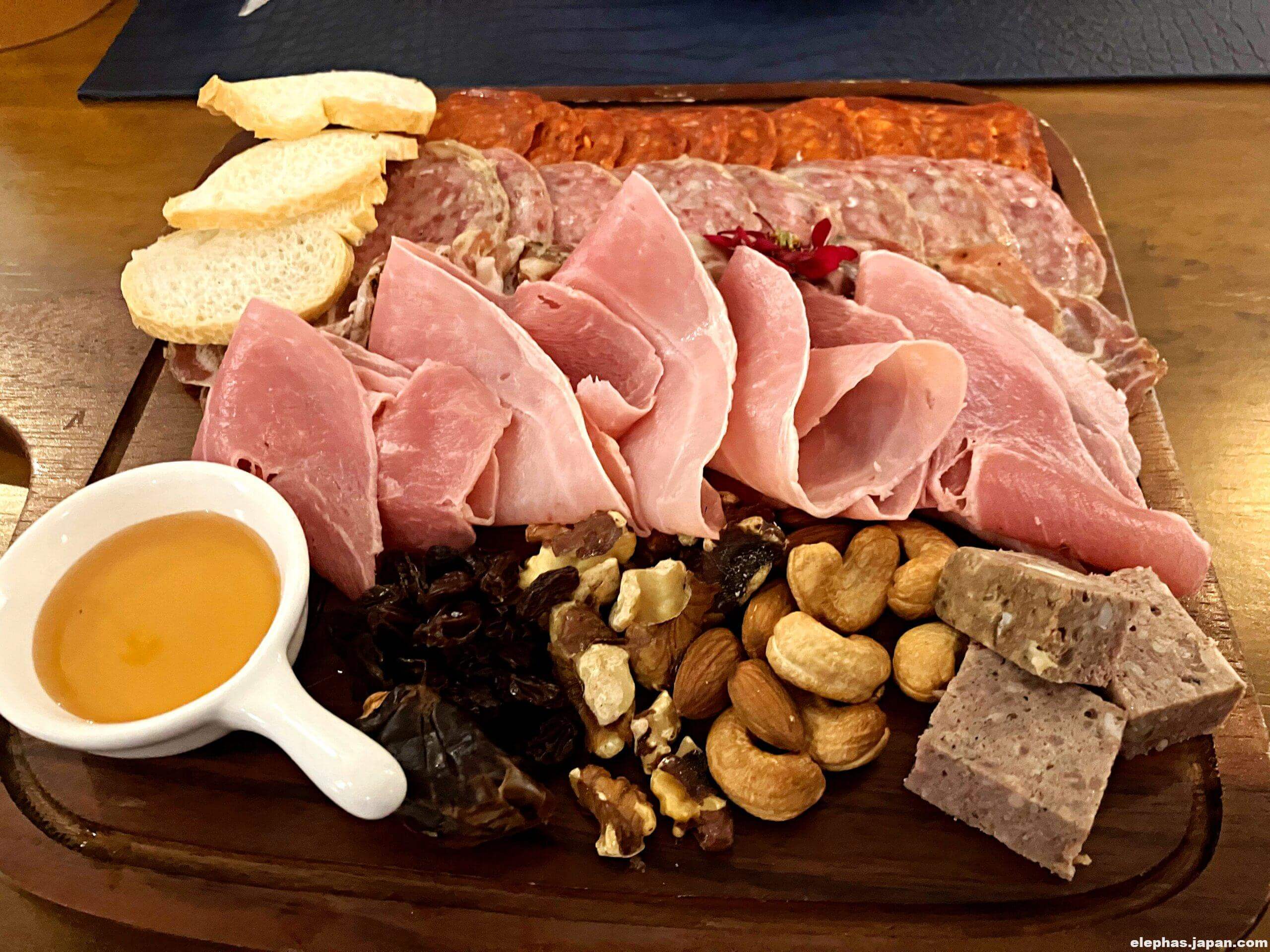まずはコールドカットプレート。一番小さなサイズ(写真上)を頼んだのですが、大人4人でシェアしても十分な量でした。サラダや前菜なども全体的に量が多いと思います。
